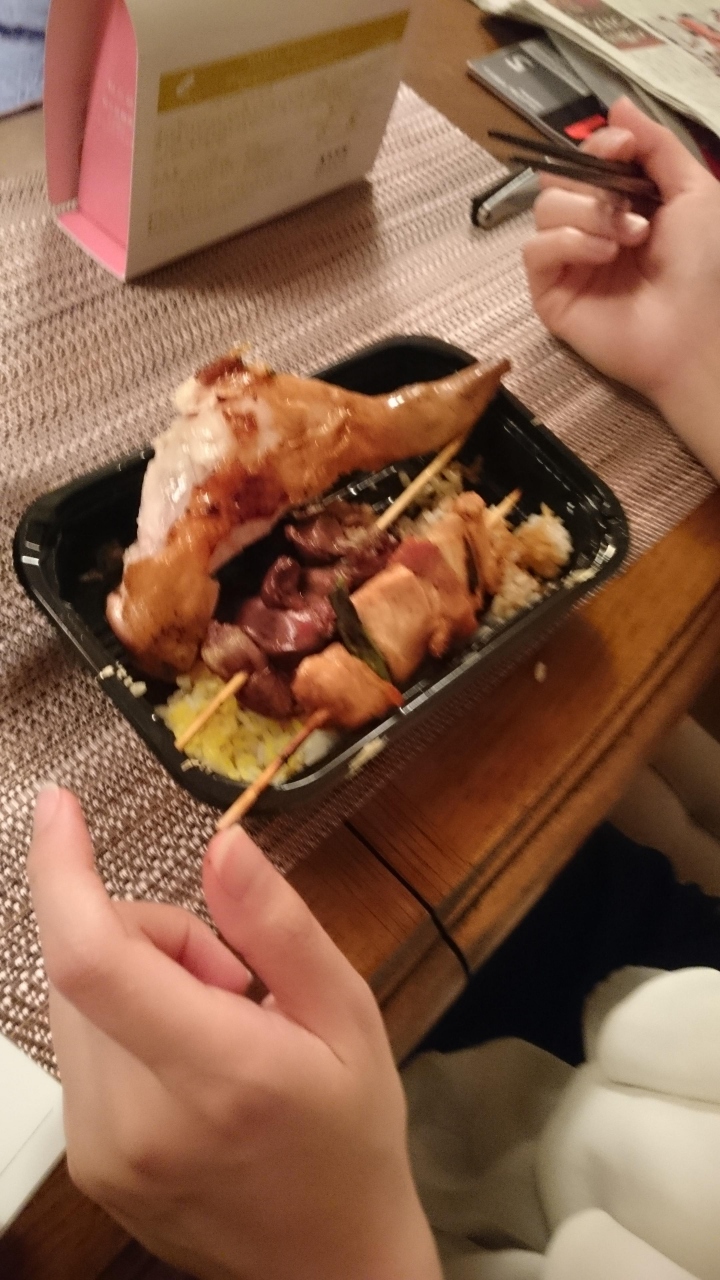 いつもこの前を通るとこの匂いに誘われてつい入ってしまう。早い時間じゃないとなかなか入れないこともある。早く帰らないといけないので今日はお弁当です。あまり並んでいないので寄ってしまったがお弁当でも20分も待った。焼き鳥が3本入ったお弁当が950えんとかだと結構高いような気がしますが、ここの焼き鳥は大きいし美味しい3本入っていたらそれだけで900円だと思うと案外安いお弁当なのです。鶏もも焼きと一緒に買って家で食べました。