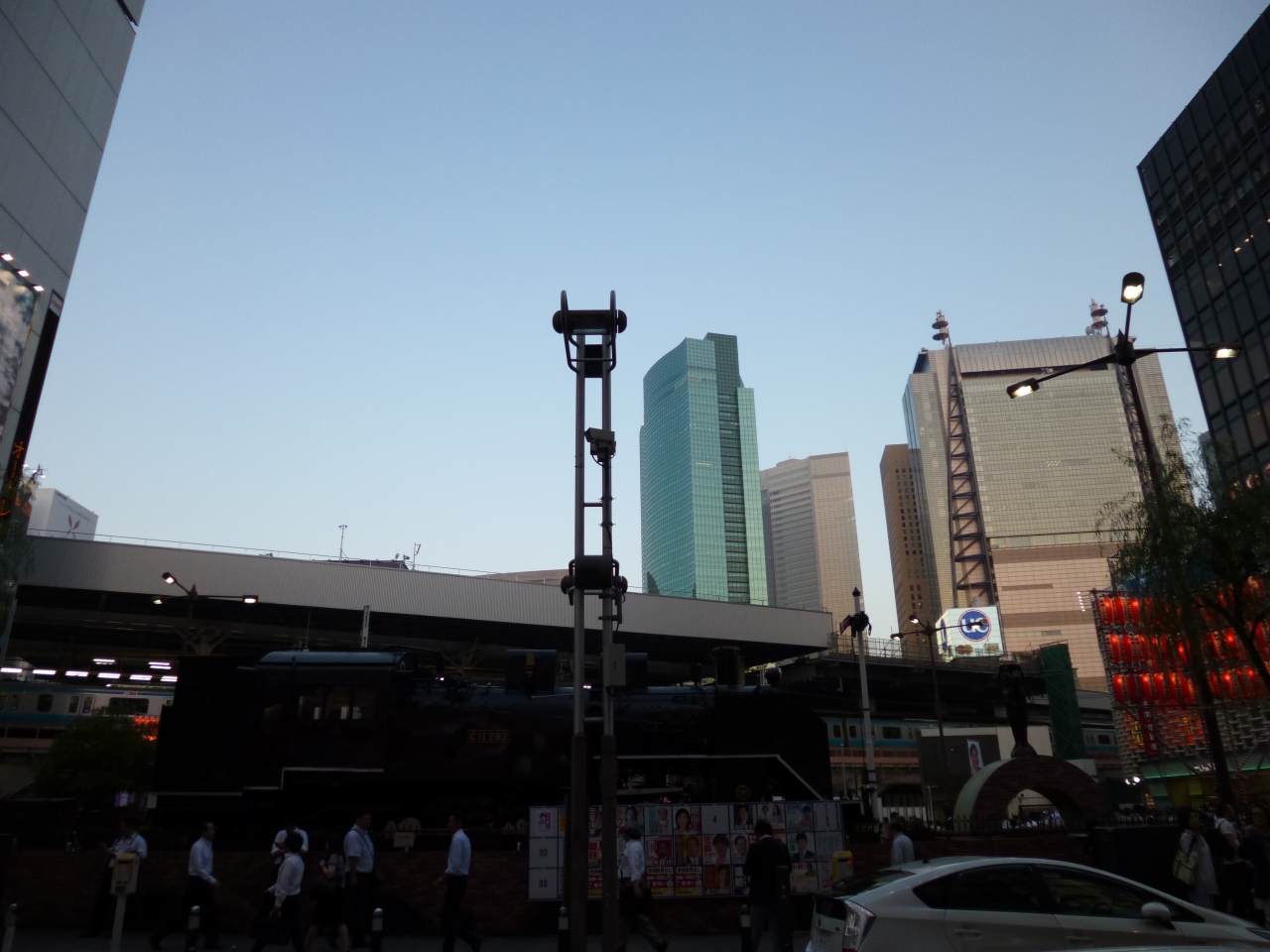 久しぶりに訪れた新橋のSL広場。夜の7時前でしたが7月という事でまだまだ日は長く、明るい時間帯でした。SL広場の前には待ち合わせのサラリーマンの姿が多く、これぞ新橋という光景だと感じました。大都会・東京の一場面は、なかなか楽しい雰囲気です。
