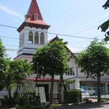 白い壁に赤いとんがりの屋根がなんともかわいらしく、思わず近づいてみると教会であった。