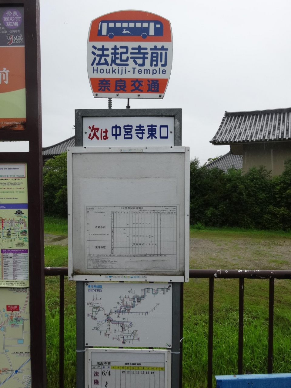 まずは法起寺近くにあるバス停でJR法隆寺駅行きの時刻を調べてからお寺へ。