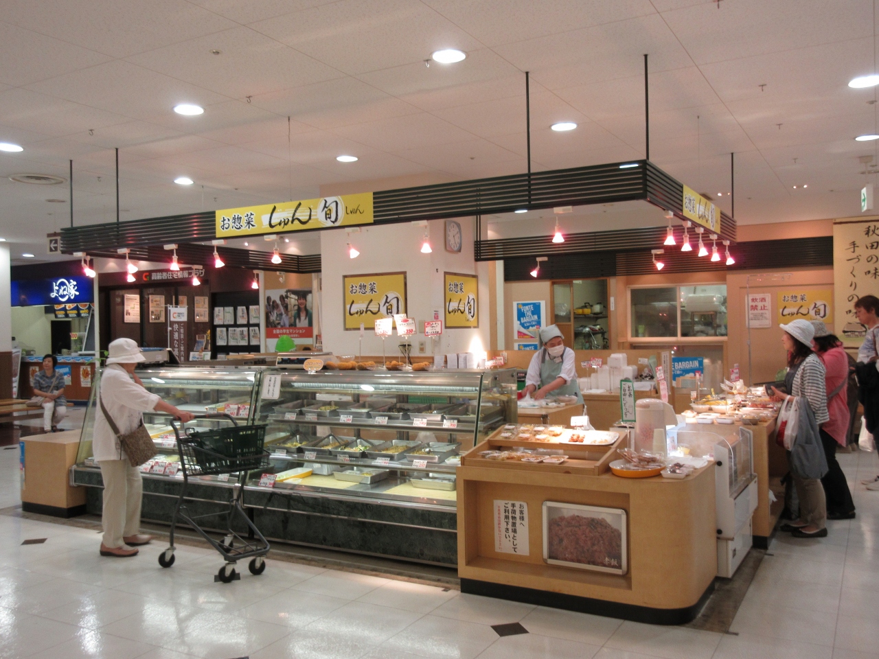 秋田駅前にある百貨店のような商業ビルです。洋服でも書店でもなんでもありますが、地下食料品売り場の一角にある総菜の店がおすすめです。しょっちゅう店名が変わりますが、今は「しゅん旬」という店名で営業しています。秋田の総菜、弁当などたくさんの種類が格安で販売されており、どれも美味しくてホテルでの夕飯にいつも購入しています。