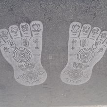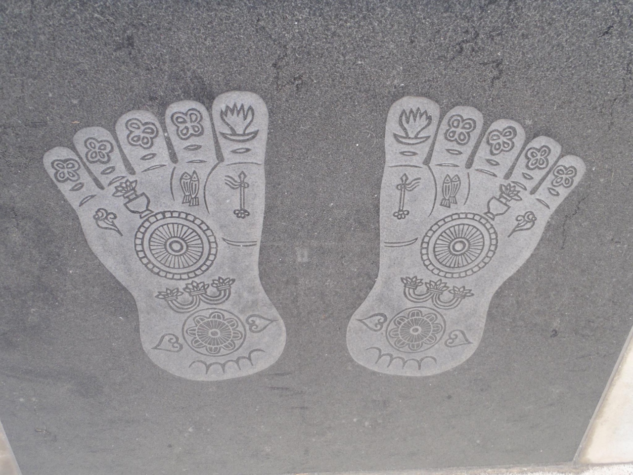 山門をくぐってすぐの敷石に触ることもできるパワーを感じる仏足跡が刻まれています。