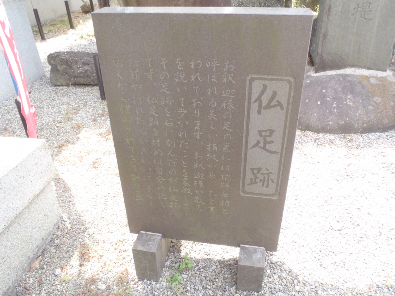 見逃してしまいそうな場所にありますが、仏足跡を拝めば自分が犯した罪や汚れた心がきれいなると案内板に刻まれています。