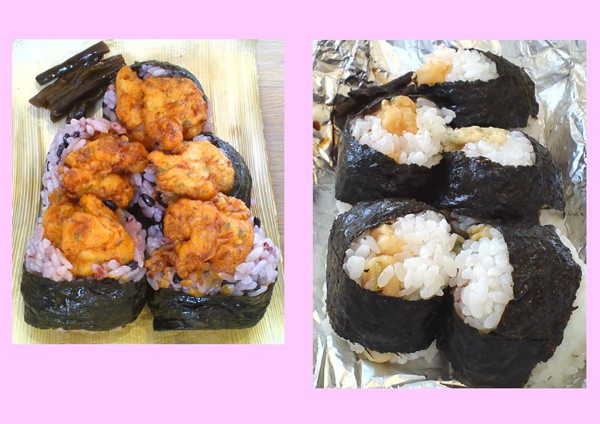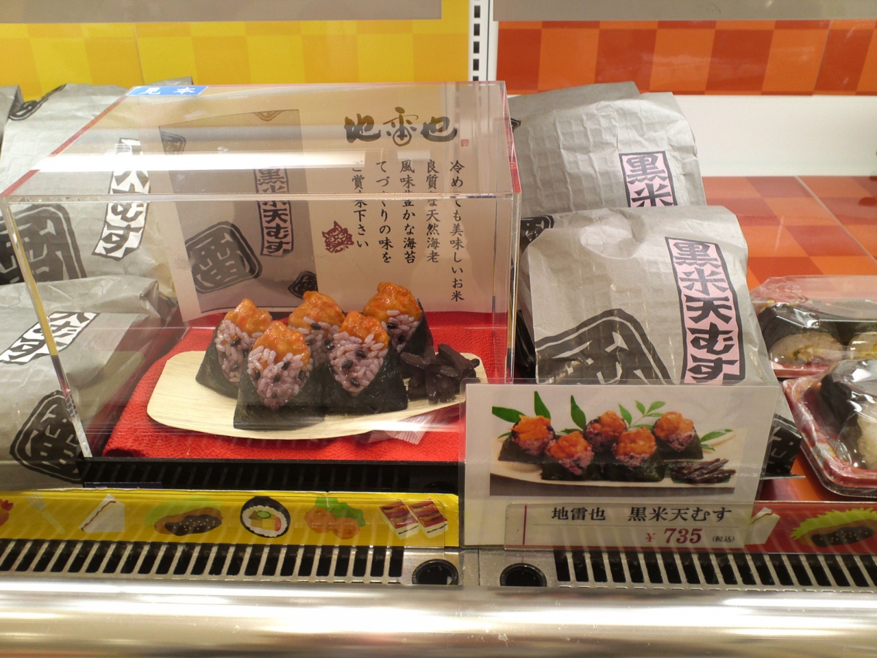地雷也の黒米天むすと千寿の天むすを買いました。