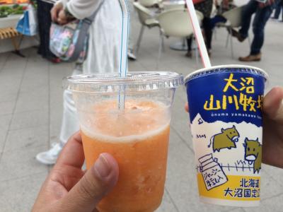お昼前だったのでメロンジュースと山川牧場の牧場シェイクをいただきました。