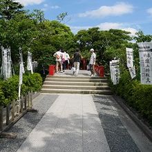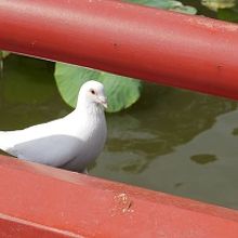 鶴岡八幡宮の三の鳥居を潜り右側に行くと源平池に浮かぶ島が見えます。石橋を渡った先に建つのが「旗上弁天社」です。旗上だけあって源氏ゆかりの白旗が数多く掲げられていて白鳩もたくさん飛んで来ます。神仏分離で取り壊されましたが再興、現在の社殿は昭和55年に古図を基に復元された物です。