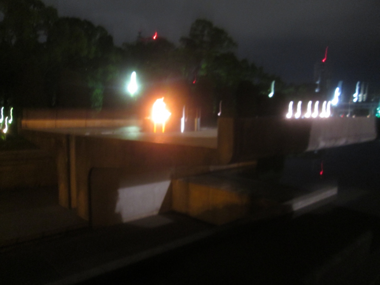 広島平和記念公園内に設置されています。手首を合わせ、手のひらを大空にひろげたような形を表現しており、その上で火が焚かれています。反核と恒久平和実現まで燃やし続けられるそうで、夜遅く訪問しても消えずに燃えていました。