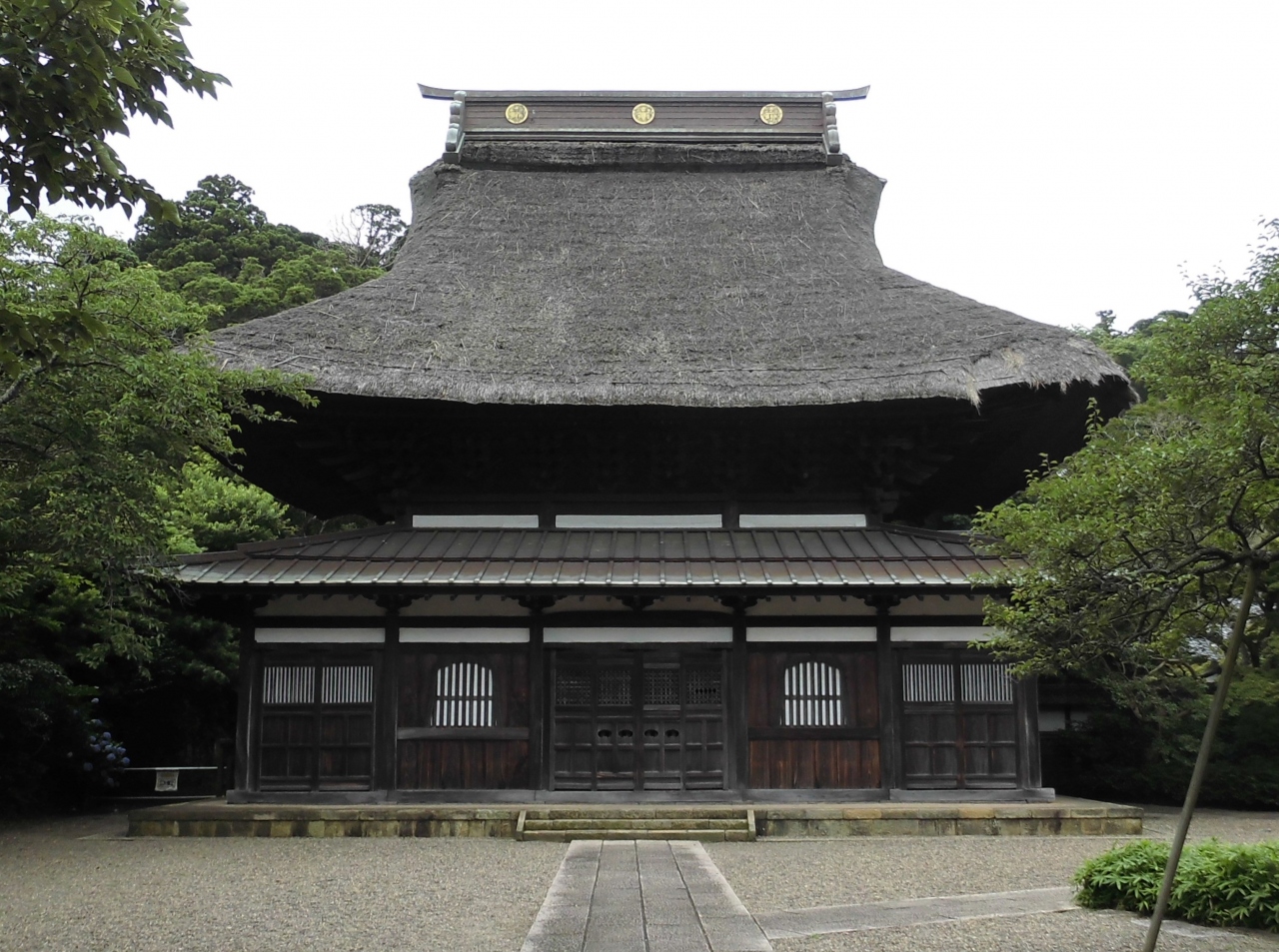 海雲山と号し、文治元年(1185)に源頼朝が建立したとされる臨済宗妙心寺派の寺院。入母屋茅葺の本堂は室町後期のもので、なかなか見応えがある。本堂右手にある国重文の銅鐘は元徳2年(1330)作で、14代執権北条高時が寄進したもの。廃仏毀釈を断行し、領内の2千以上の寺院をぶっ潰した水戸光圀が再建したとのことだが、「徳川の先祖は源氏」とのたまわっている以上、光圀と云えども頼朝の建てた寺を邪険にはできなかったようである。