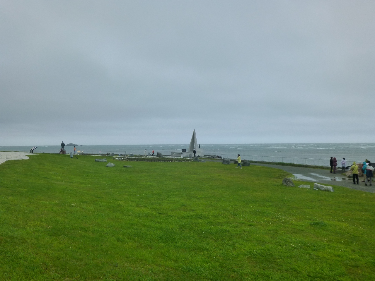 風雨の中、最北端の岬にきた。向こうはもうロシア、サハリン。年配者としては戦後のことを思い出し、悲しい気持ちにはなる。7月いうのに現地の人もびっくりの7度! 写真を撮って、眺めて、トイレに行ってすぐにバスへ。それにしても周辺の売店の超日本流なこと。あののぼりと掘っ立て小屋は海外の人には恥ずかしいなぁ・・・。