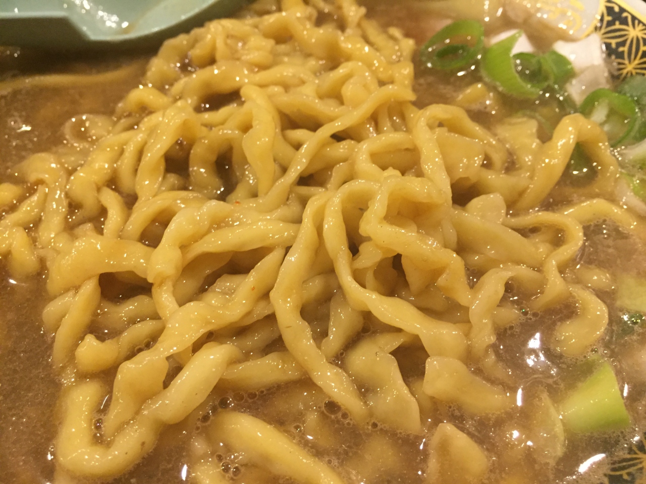 麺は太目の平打ち麺で、シコシコしていて非常に食べ応えありました。