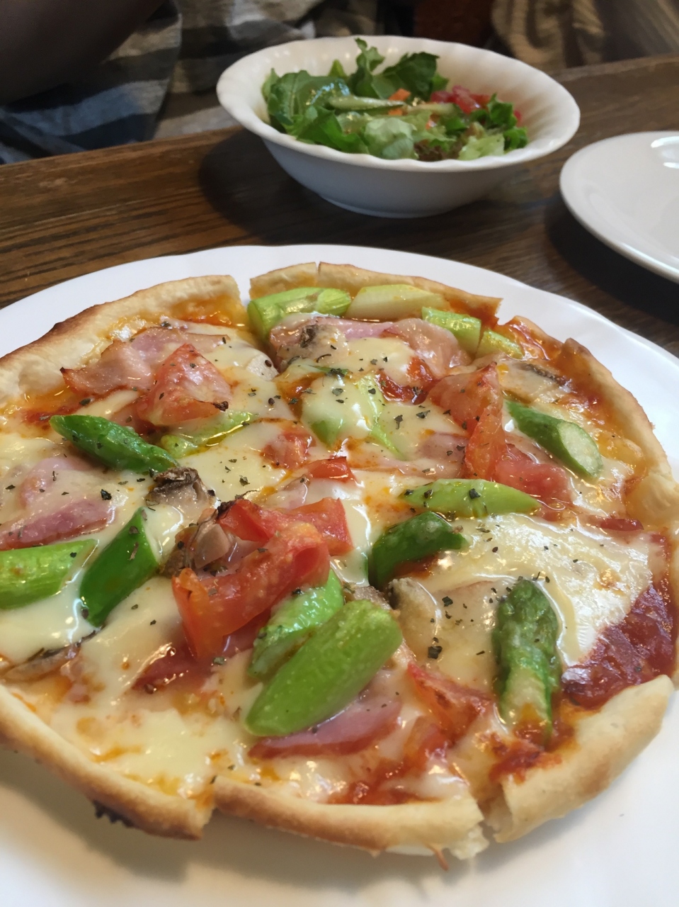パスタ、ピザ、ホットサンドなど多種類のメニューが用意され、セットのサラダもいらない人は外してもらえて50円引いてもくれますので、あまり野菜が得意じゃない方にも嬉しい設定。