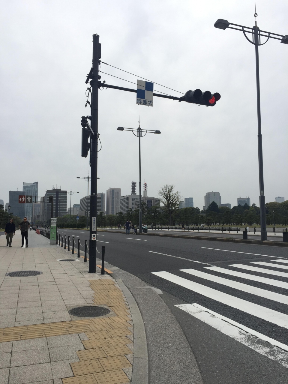 皇居外苑の敷地を通っている大通りです。名前の通り内堀に沿って一周するようになっている通りなのだそうです。皇居外苑を突っ切っている通りの付近はあまり交通量も多くない感じでしたが、しっかり信号があり、交通誘導の人もいました。