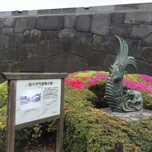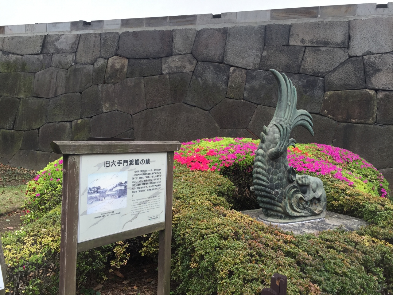 大手門から皇居東御苑に入るために、1つめの門をくぐったところにありました。しゃちほこというと名古屋城のイメージがありましたが、江戸城にもあって、昔あった大手門渡櫓の上に取り付けられていたものだそうです。