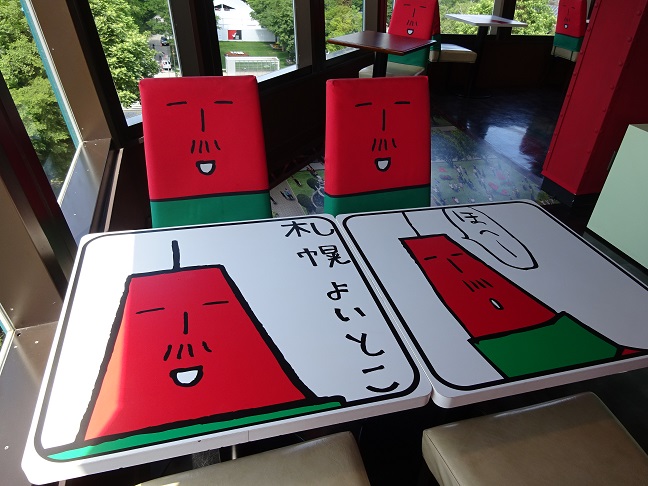 何度か札幌に来ていますが、初めてテレビ塔に上ってみました。60秒でビル30階程度の展望台へ。「怖窓(こわそう)」は、床から壁一面ガラス窓が斜めについているので、ホントに怖い(^_^;)。NHKテレビなどでよく出る大通りに向かった景色が広がって思わず「テレビ見ているみたい」と言ってしまう。お天気が良かったので展望抜群。意外と楽しめました。来場者には、下で買えるソフトクリームが大幅に割り引きになる券をくれます。3階の休憩所の脱力感もぜひ。