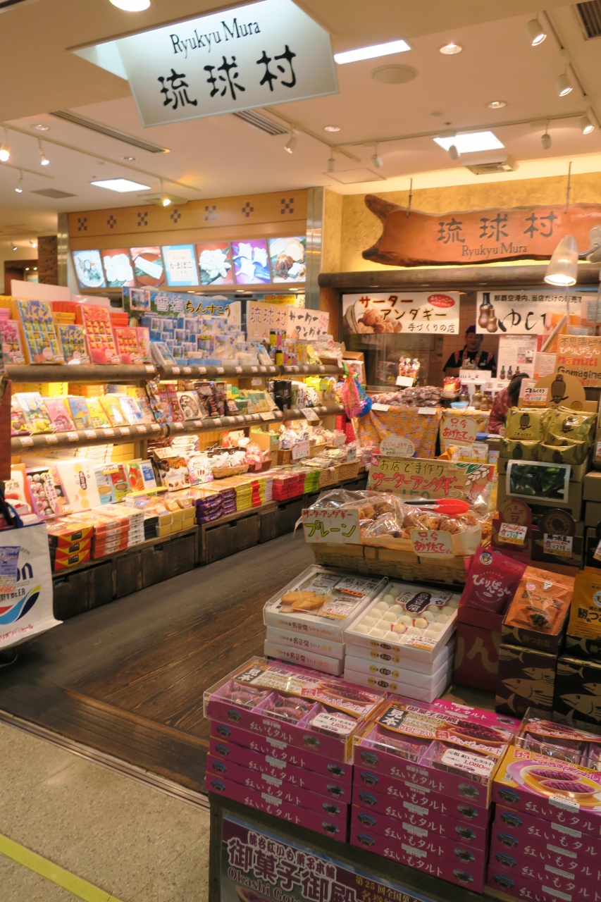 琉球村といえば,恩納村にある昔の沖縄にかんするテーマパークですが,ここのお店は,沖縄に関係したいろいろなお土産物を売っています.2階の真ん中あたりにあるので,JALに乗る場合もANAに乗る場合も便利です.