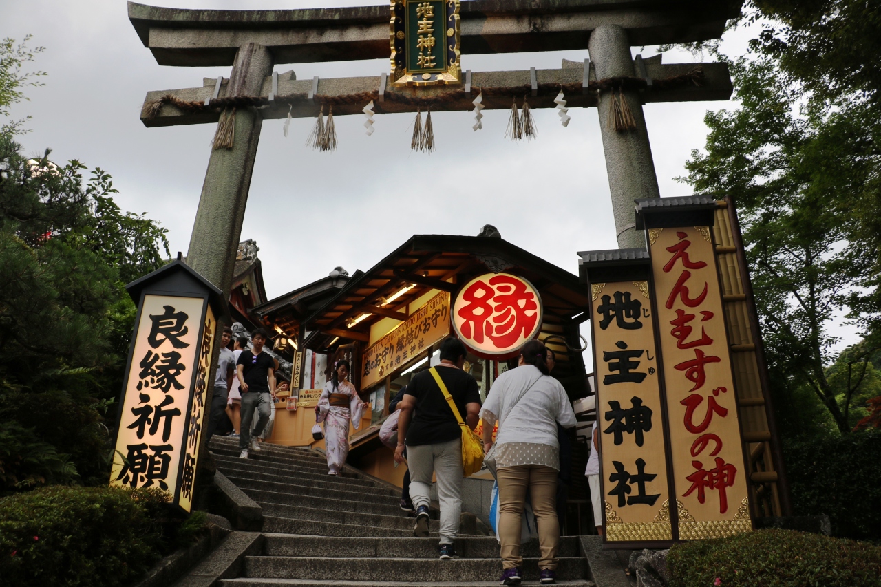 清水寺の本堂を抜けて石段を登った場所に鎮座しています。神社にしては少し派手な感じがします。恋愛に関するお守りが充実しています。江戸時代までは神仏混淆で清水神社の守護神、境内社でしたが明治になり神仏分離令で独立した神社となりました。地主神社の主祭神は大国主命で良縁の神様なのでいつのまにか縁結びの神様として清水寺を訪れる女性の人気スポットになったようです。私にはあまりこのご利益は必要ありませんが恋の相手を探している若い方は清水寺を訪れた序に恋愛おみくじに興じて見てください。