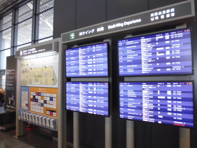 成田空港の第一ターミナルをデルタ航空を使うのに利用です。第一ターミナル端の荷物を送ったところに行き、荷物を受け取り、いよいよ出発です。