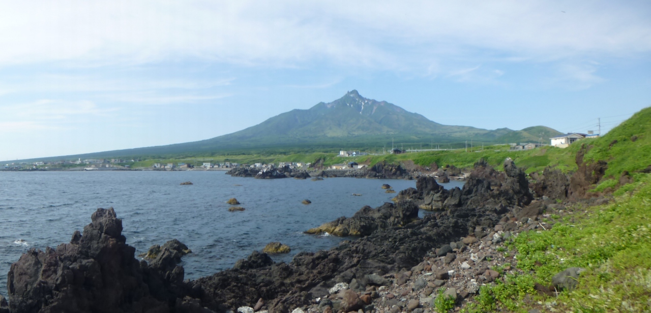 ガイドさんもびっくりの天候で、裾野が海まで伸びているのがチャンと見える。もちろん頂上からずっと。なかなかここまで見えるのは珍しいとのこと。イルカもいたし、お土産屋さんもあるけれど、山と海、空を眺めているのがいいですね。