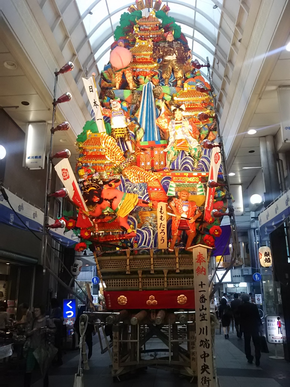 博多川沿いの長さ約400mの川端通商店街アーケードにも、「博多祇園山笠」のお祭り期間中(7/1~15)は、飾り山笠が展示披露されます。