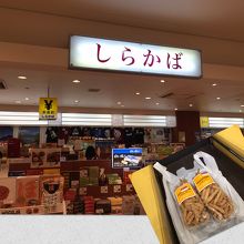 函館空港国内線ターミナル2階、出発ロビーフロアーにある土産物店「しらかば」。