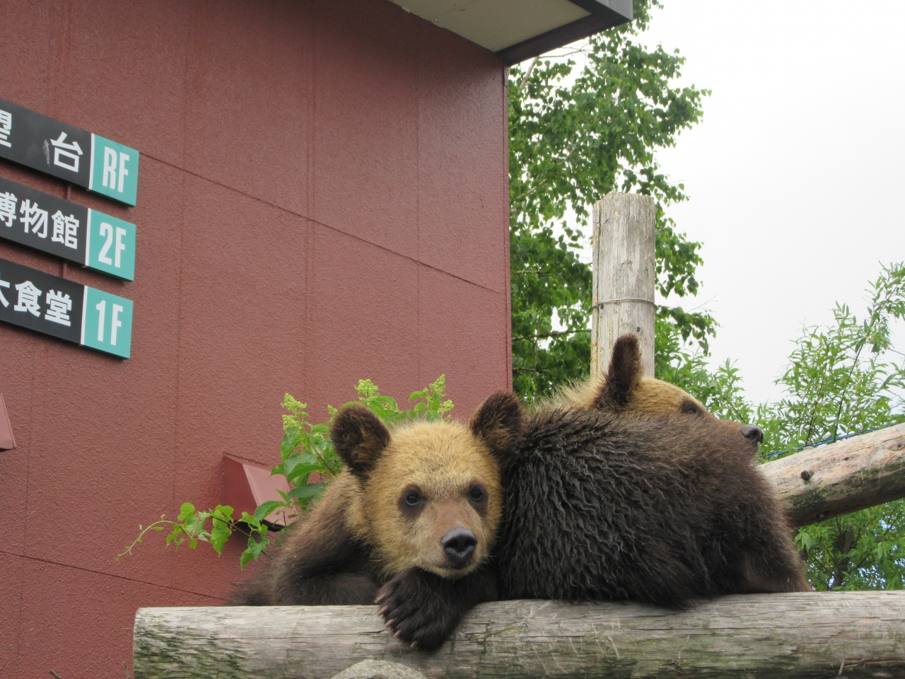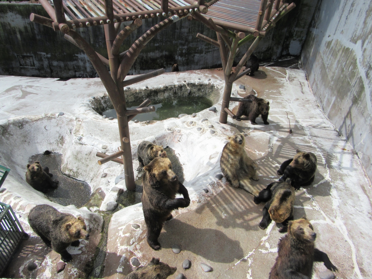 上から投げ入れますが、熊たちは待っていましたとばかりに