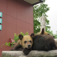 両側に熊が一頭ずついて、エサを入れるところがありそこに置いて