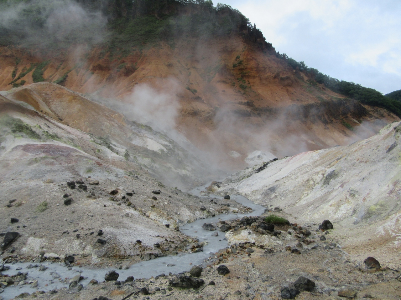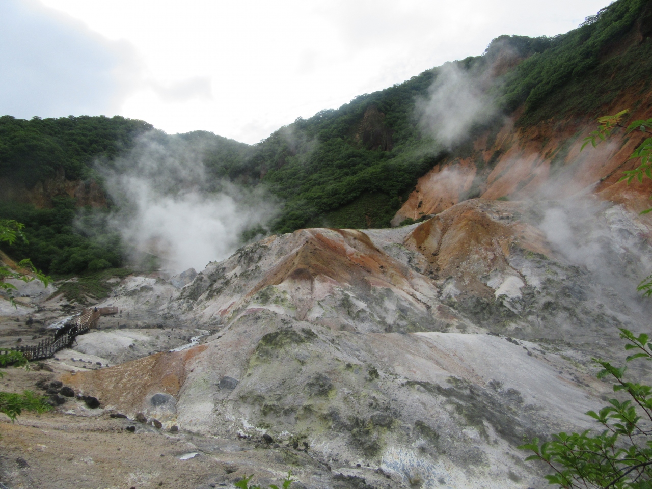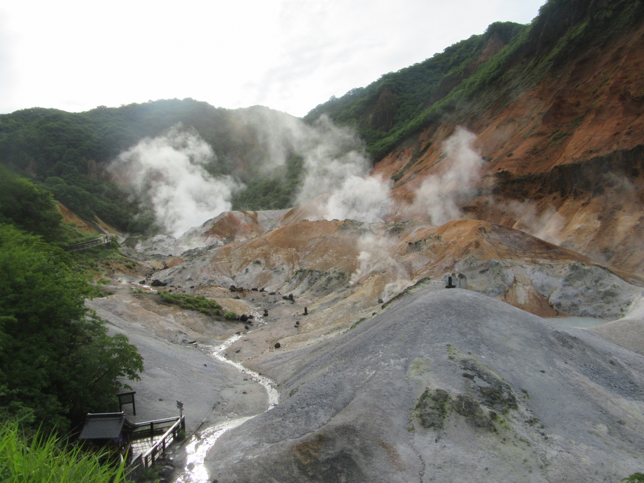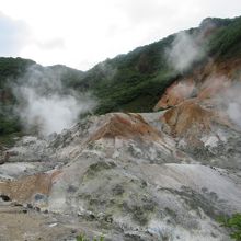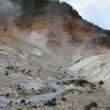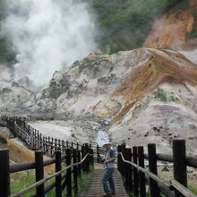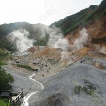 大湧谷より規模も広さも大きくて、まさに源泉地で荒涼とした風景は地獄谷の名に