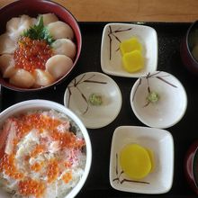 迷いましたがほっけとルビー丼とホタテ丼を注文しました。