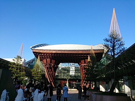 新幹線で金沢駅に着くとまず目にするのが鼓門。