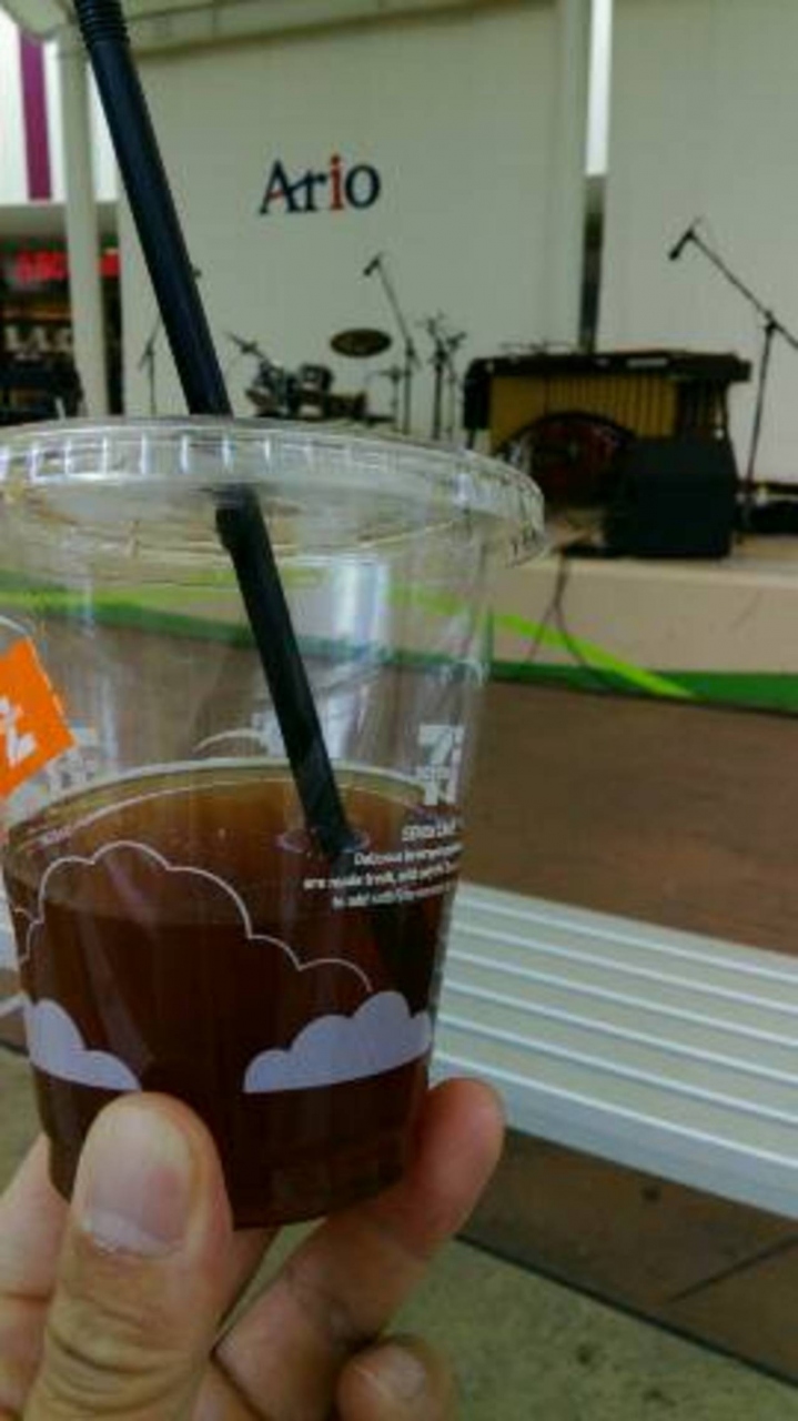 セブンアンドアイで買ったアイスコーヒーに烏龍茶を入れ直して、水分補給しております。。