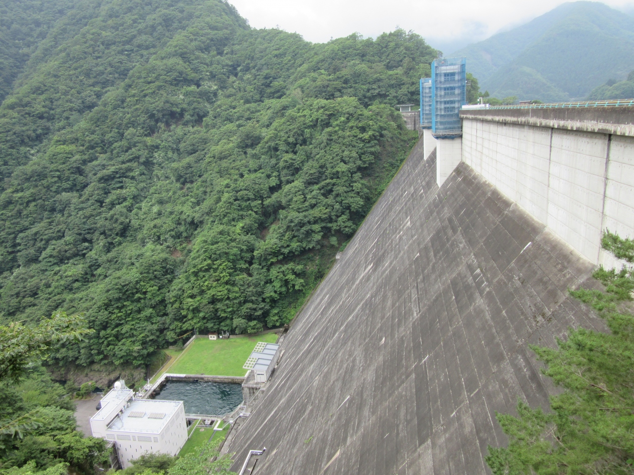 小河内ダムは堤高は149m堤頂長さは353mある重力式コンクリートダムです。