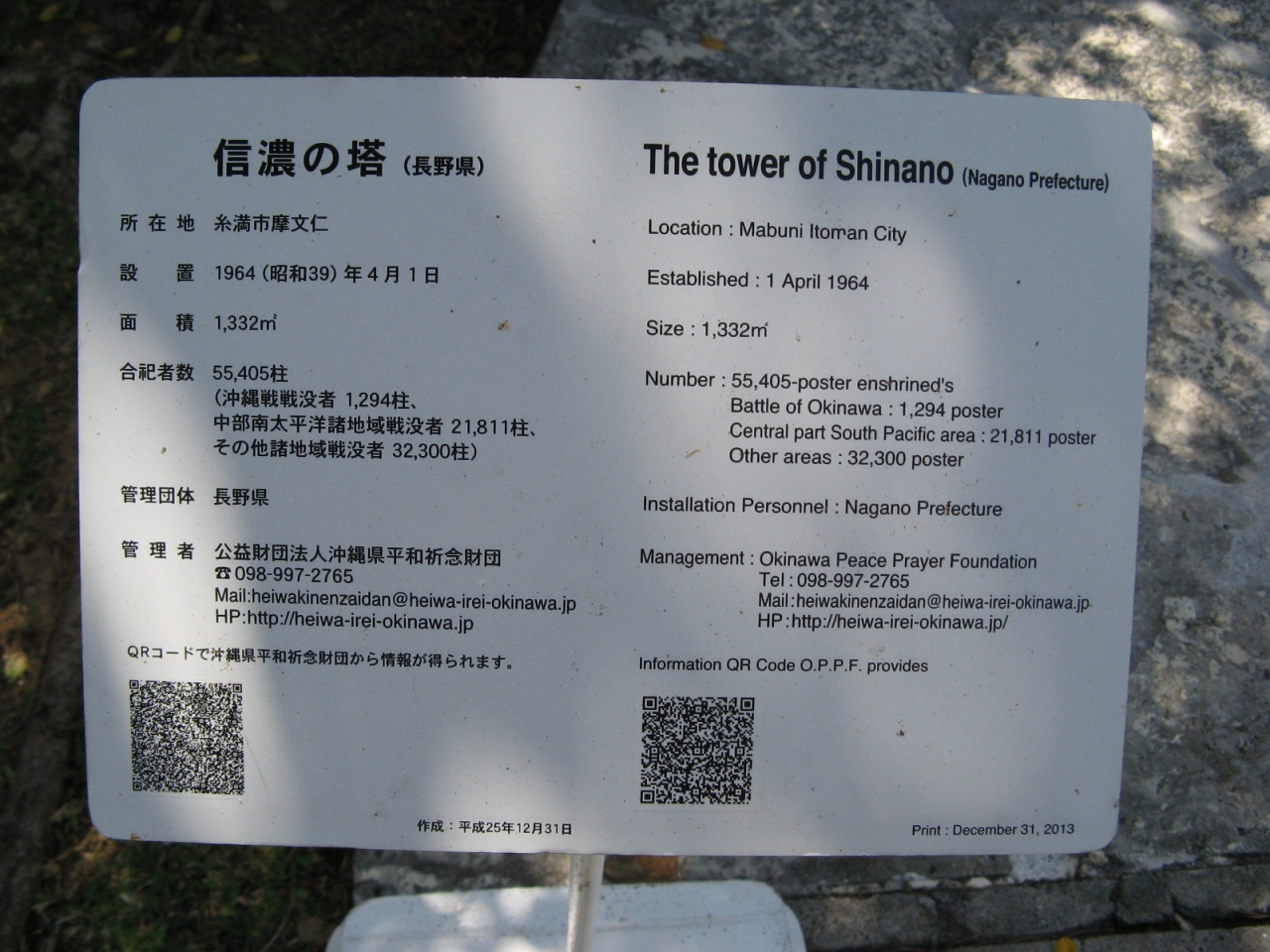 塔の入り口には、QRコードで、沖縄県平和記念財団から情報を得られるようになっていので、参考にされるとよいでしょう。