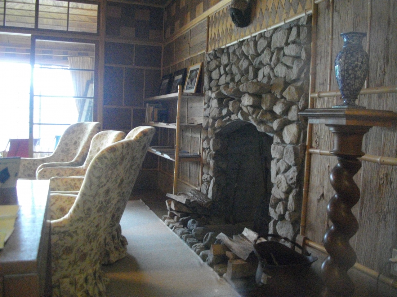 一番の感想は、「ほんまに良い場所に建てたのう」でした。手前に車を停めて徒歩で行きます。静かな湖のほとりにとは、まさにこの場所。入館料がとられます。中に入らなくても、近くの湖の景色は十分楽しめます。中には暖炉があり、くつろげる空間がありました。