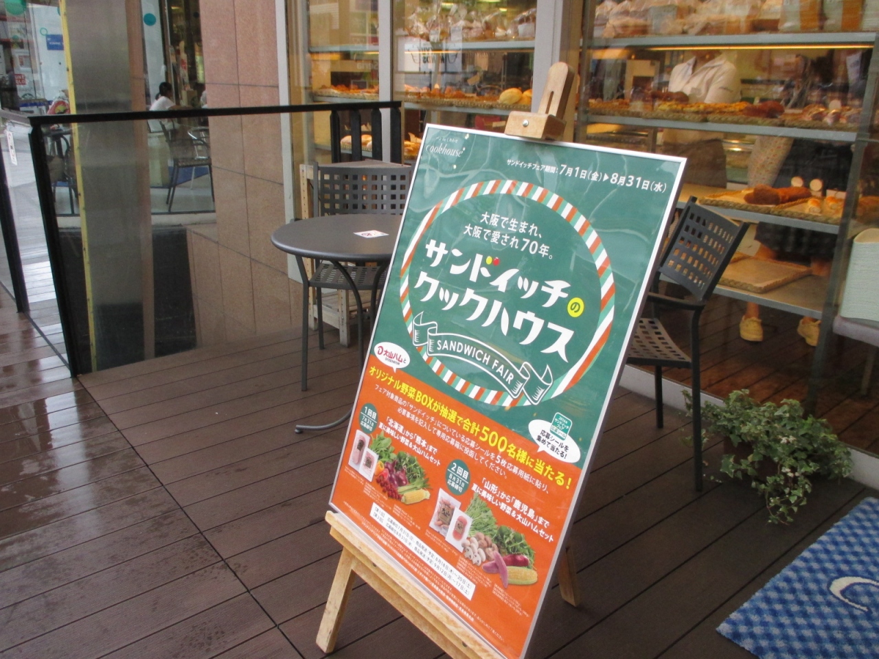 サンドイッチのスペシャル店です。江坂駅からすぐです。8月31日までフェア対象商品のサンドイッチについている応募券5枚で野菜&ハムセットが抽選であたるので、私も応募しようと思っています。イートインのお店です。おいしいサンドイッチをいっぱい食べましょう。