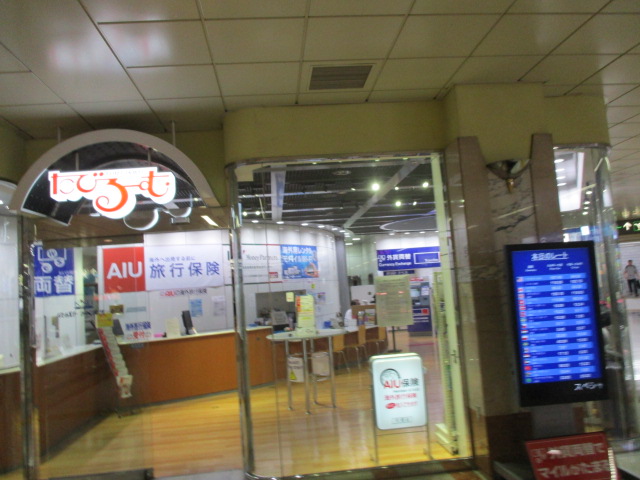 京成電車を利用して成田空港第一ターミナルに行く時に必ず目にする場所、通る場所です。外貨両替のトラベレックス、海外旅行保険のAIUが入っています。ここで両替すれば1万円につきANAもJALも20マイルつきます。キャセイのアジアマイルもつきます。マイラーにはお得な場所です。