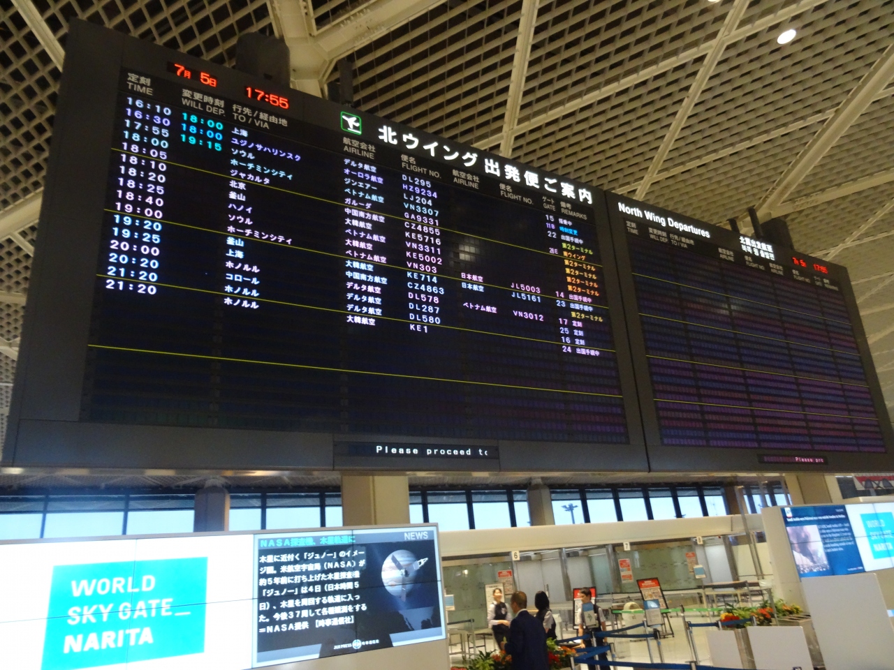 かつては実用性一本やりの運転免許試験場のような無機質な風情だったような気がしたが、非制限、制限エリアとも随分と改修されいて、70年代風の上ったり下りたりのメンドウな導線が残っていたりもするが、外国人観光客が喜びそうなショップ、レストラン、免税店なども随分とあり、オモテナシの国の玄関に相応しい? 華やかさが備わっていた。