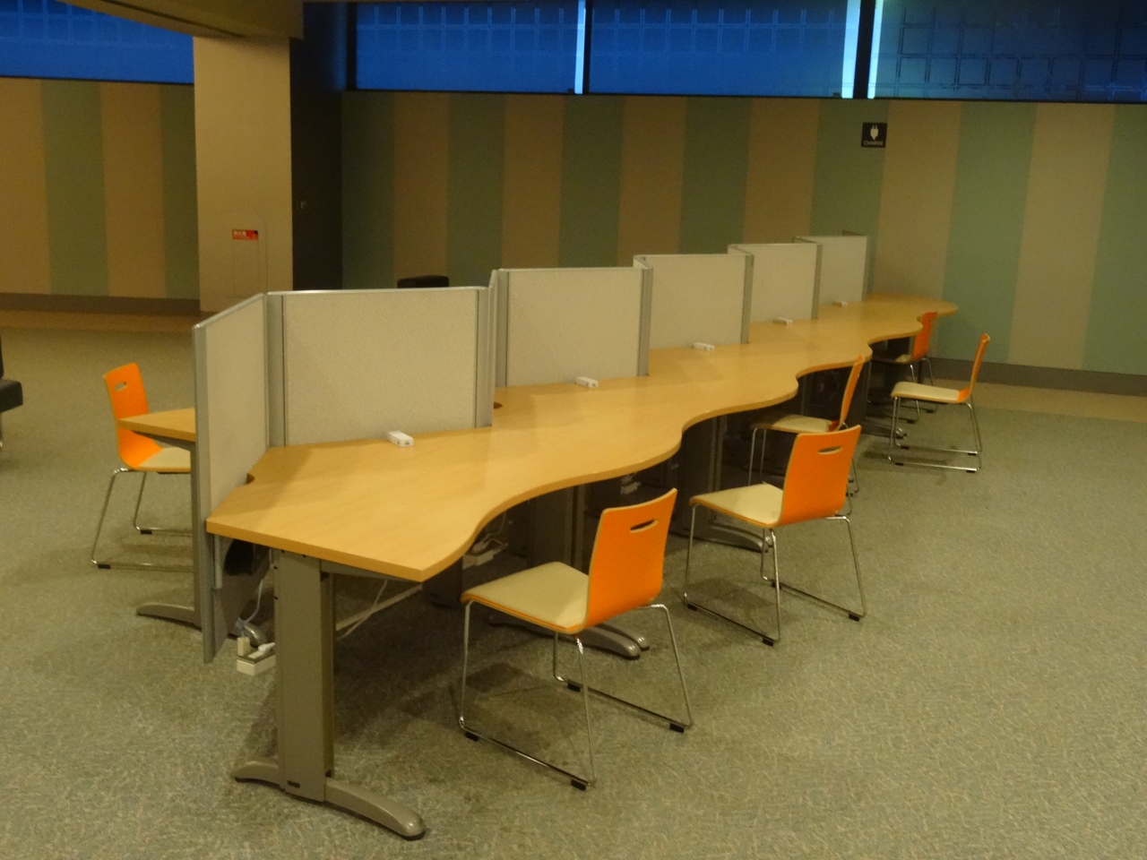 第2サテライトには中央の階段を下りていくと搭乗待合室というのがあり、ここにも電源付の机やリクライニングのきく椅子などがあった。搭乗機の出発が1時間30分ほど遅れゲート付近のベンチは空きがなかったが、こちらは信じられないほどガラガラで、タイミングにもよるのかもしれないが穴場スポットだった。