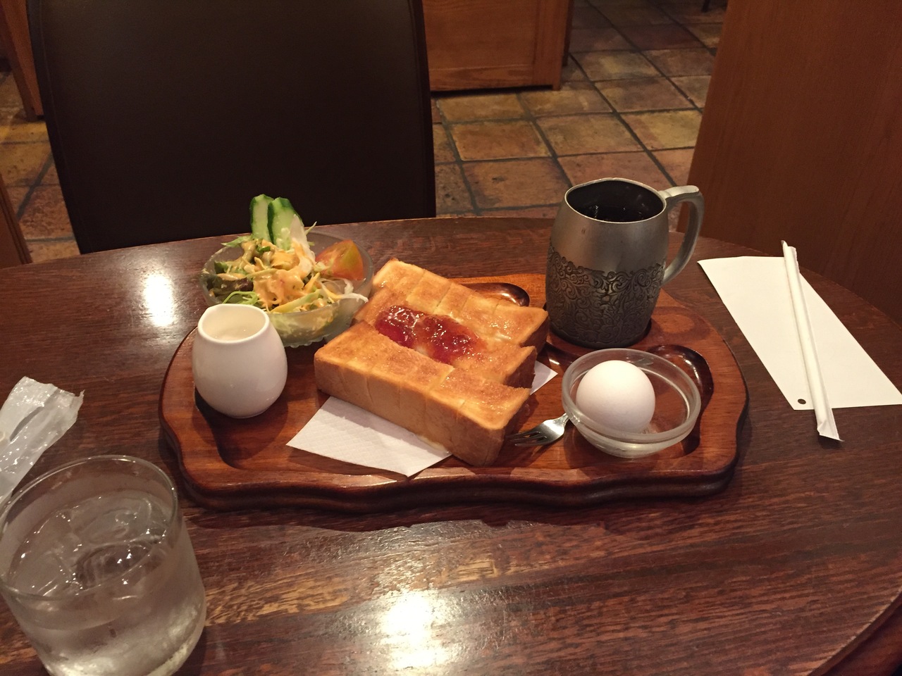 新大阪駅の一階、味の小路にある喫茶店です。モーニングで利用しました。モーニングセットは4種類あり、フルーツをサラダに変更できます。500円のトースト、サラダ、卵、ドリンクのセットをいただきましたが、洗練された良いお味で美味しかったです。