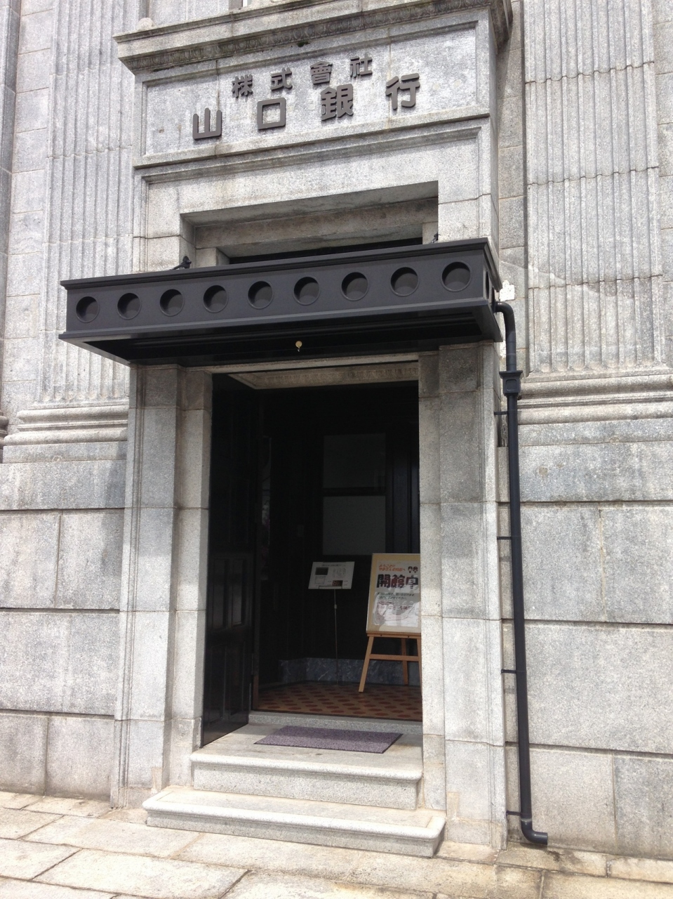 唐戸方面を散策していると、1920年に三井銀行下関支店として建築された県指定有形文化財となっています。隣接しているやまぎん史料館では金融資料や山口県内の伝統工芸品が入場料無料で見ることが出来ます。大正9年に建てられたモダンな建物がノスタルジックで素敵です。