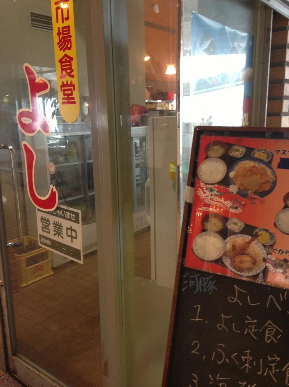 唐戸市場にきたら、ふく料金が食べられる市場食堂よしに行こうと決めていました。日曜日の9時でしたが、一階の市場はお寿司を買う客でごった返ししていましたが、二階は割と空いてます。ふくの唐揚げは美味しいです。
