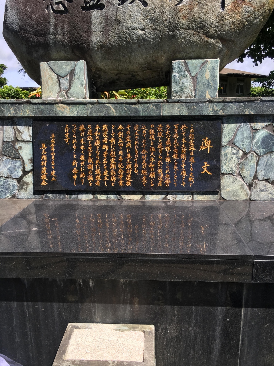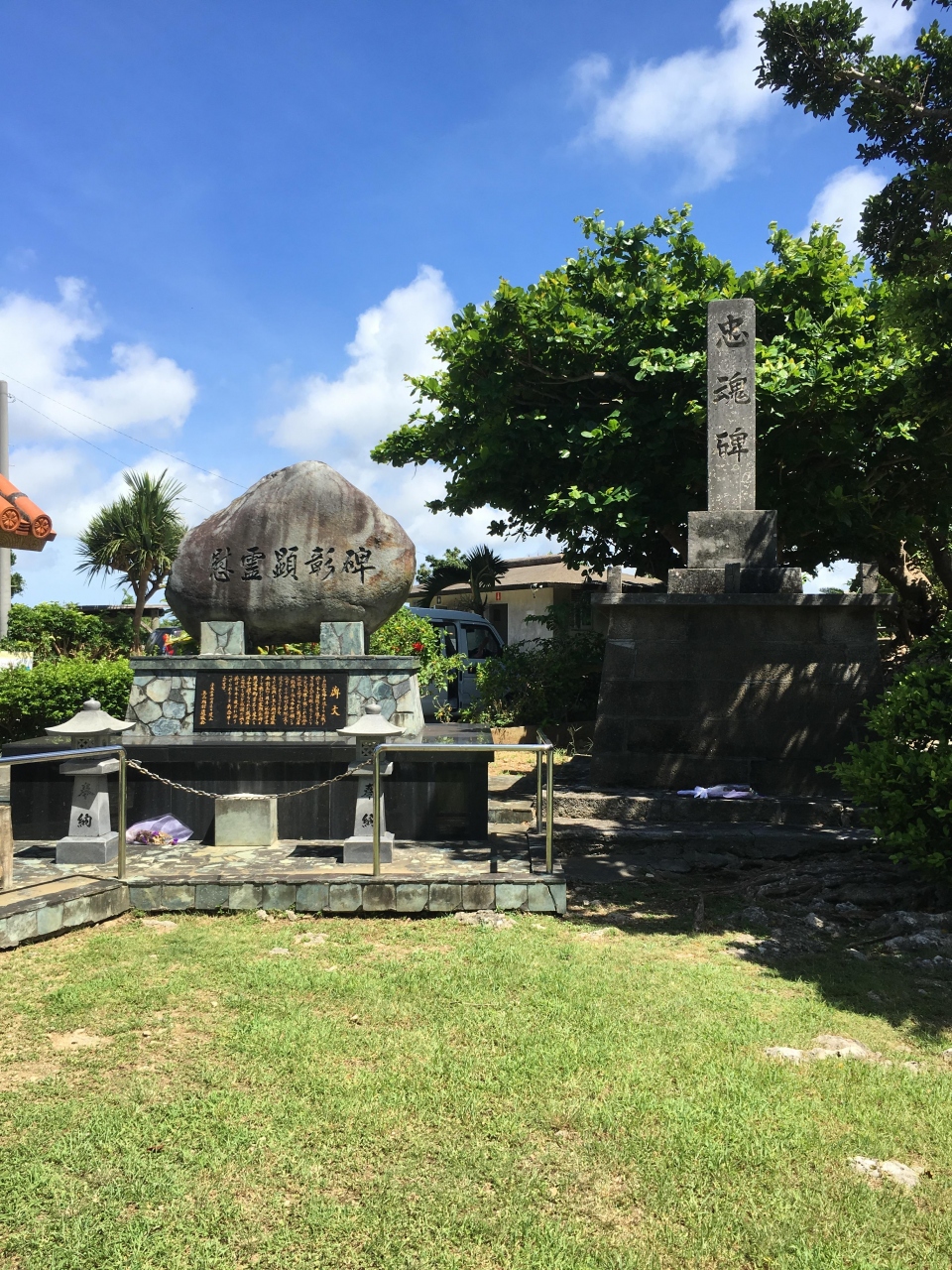 結果として軍民問わず多くの犠牲者を出したこの地区で、やはり住民の方々主導によってそして塔の後方には戦争で亡くなられた具志頭村出身の芳名が刻まれています。魄粋之塔自体は集落単位で建立された慰霊碑と大差はないと思うのですが、この敷地内には?忠魂碑?が建立されています。建立時期は定かではないものの戦没者を含む公務中に亡くなられた方々を祀る塔であるため、違和感を感じました。