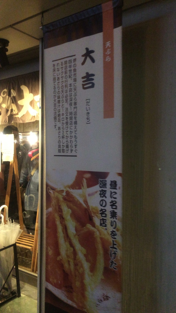 なんばCITYとひと続きになったなんばこめじるし。そこにある行列店です。こちらは堺の市場にある天ぷら屋さんです。揚げたての天ぷらが美味しいです。あと、あさりの味噌汁を飲んだらそのまま殻を下に捨ててOKなのがウケています。