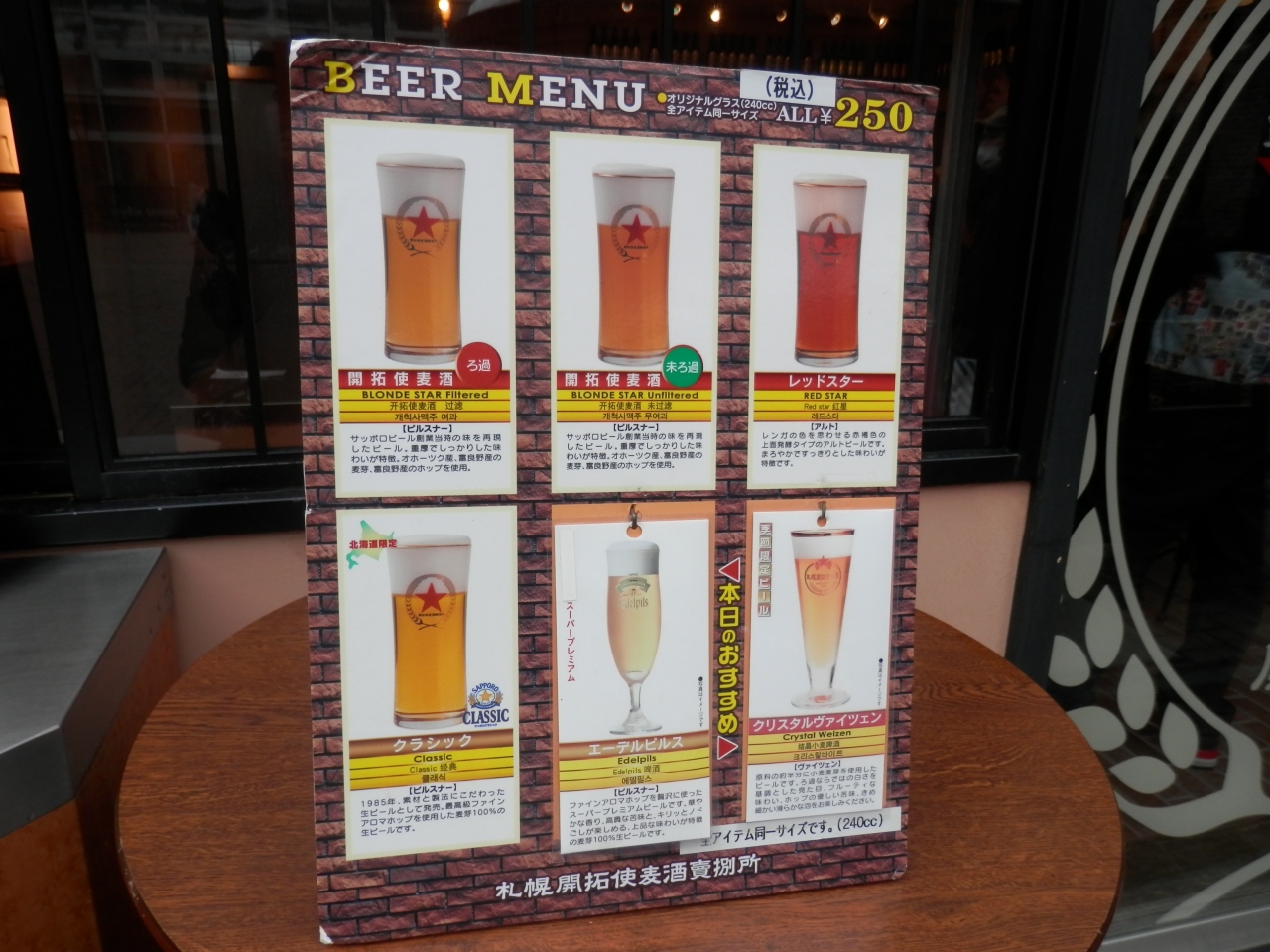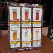 サッポロファクトリーはサッポロビールの工場の跡地なのでこのような売店がありました。私が行った時には6種類のビールが試飲でき1杯250円でした。小さなグラスでの提供なので違う種類の飲み比べをしてみました。店内の座席は数が少なくて座ることができなくもう少し広いといいのに。