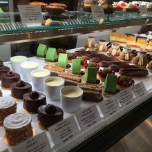 ショーケースには綺麗なプティガトーがたくさん!一つ一つ綺麗で私好みのケーキにずっと見てても飽きないです^^;悩みに悩んでピスタチオムースのケーキを注文。