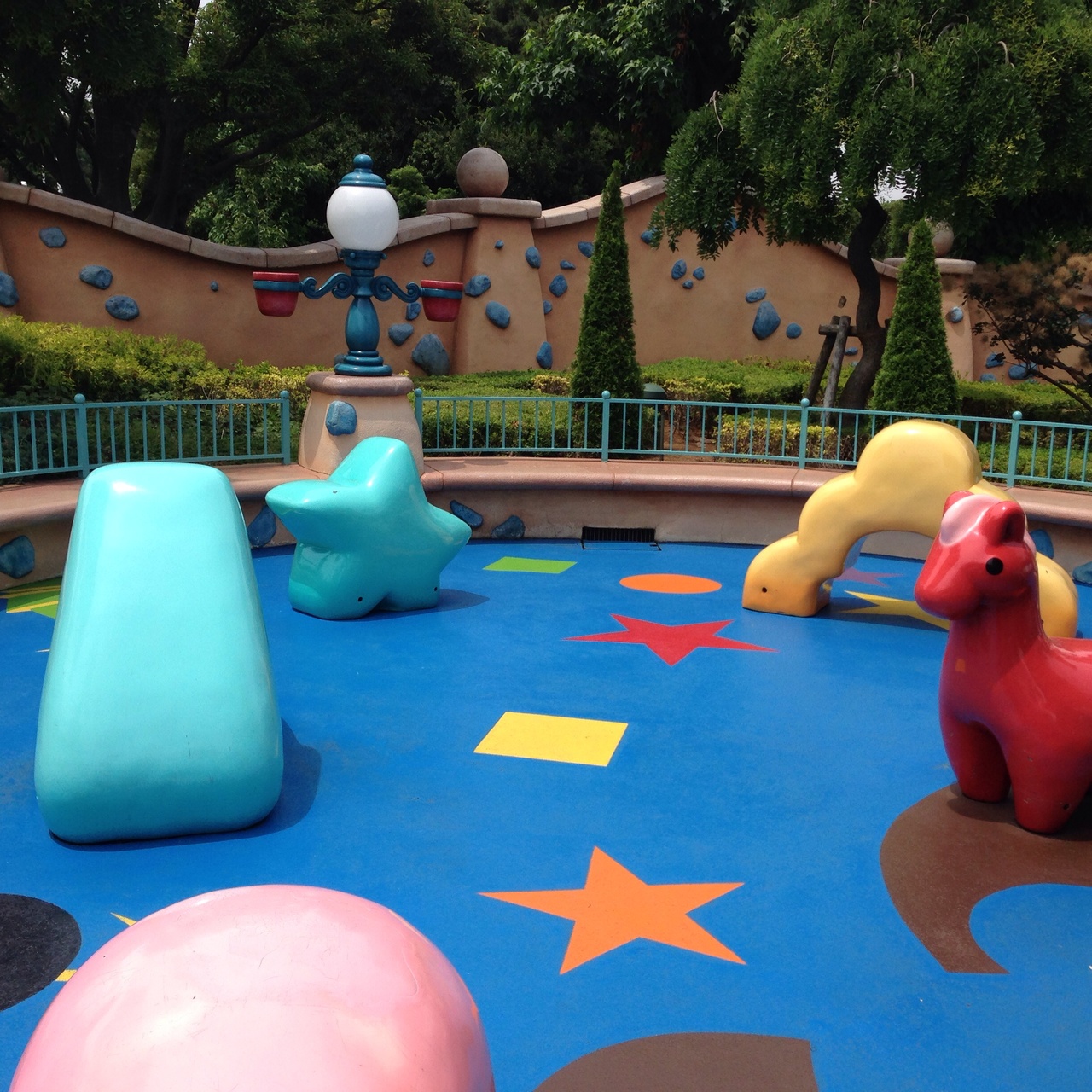 トゥーンタウン入ってすぐにある プレイゾーン。どこの公園にもありそうな またがって乗るだけの子供向けカラフル遊具があります。これはミッキーが作った彫刻だそうです!