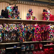 ウエアを取り扱うお店。パーク内でド派手なTシャツを着てる人をやたらとみかけて気になっていた、ここで売っていたのかと納得。原色で柄々のTシャツはディズニーランド行ってきました‼?って100%分かるデザイン。とにかく種類豊富。そして お揃いで勢いで買える値段です。