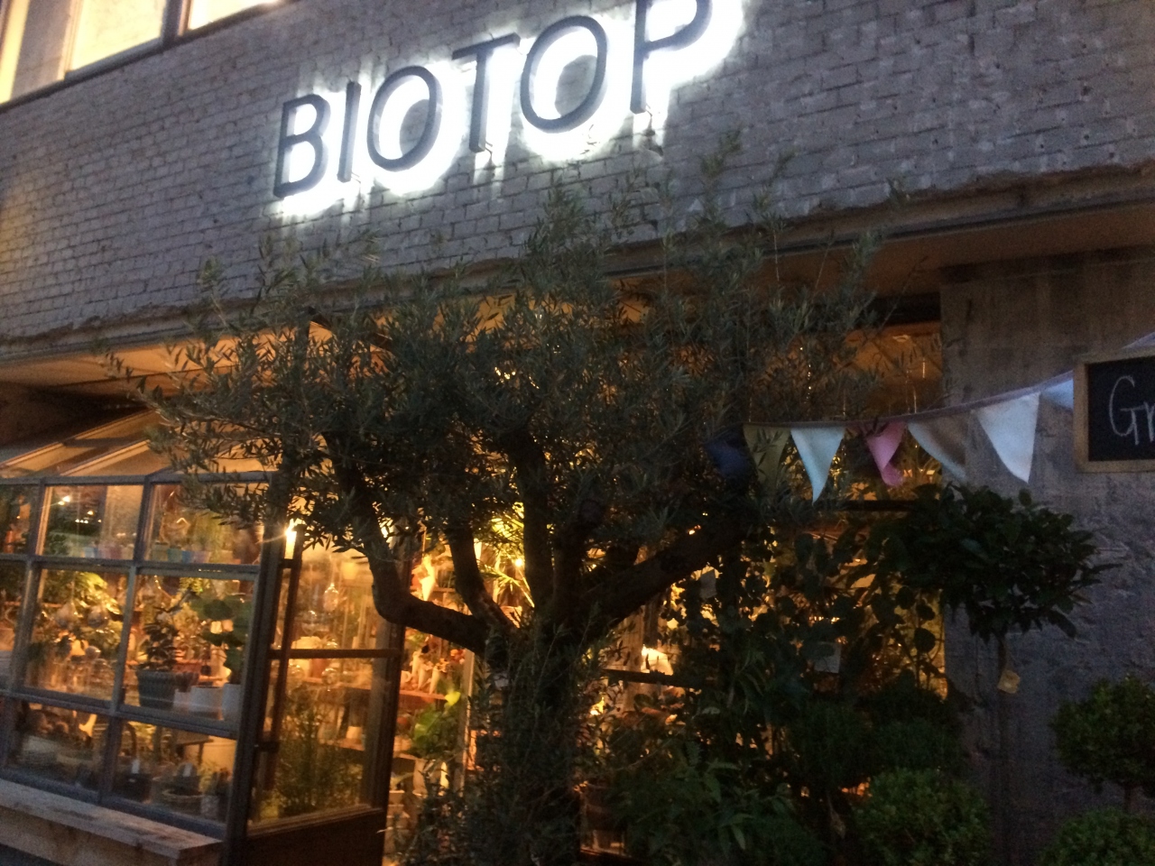 堀江のオレンジストリートの入口にあるBIOTOP。1階にはカフェとグリーン、ショップ、2階はショップでセレクト系、そして最上階のテラスはピザが食べられるレストランになています。とにかく開放感が気持ちよいのとピザが美味しいです。