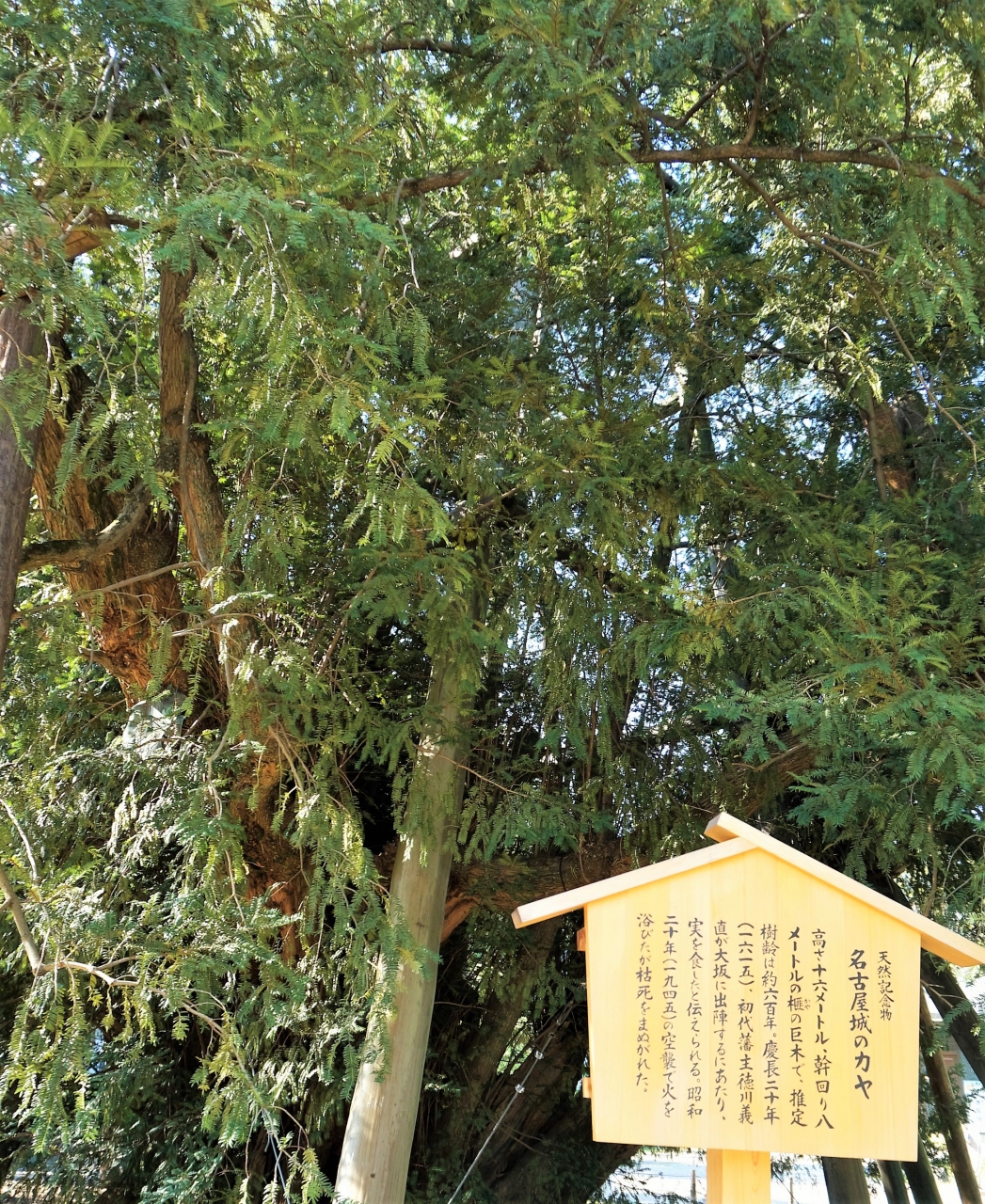 案内板には、樹齢600年以上を経たと伝えられる天然記念物「榧(かや)の木」とあります。