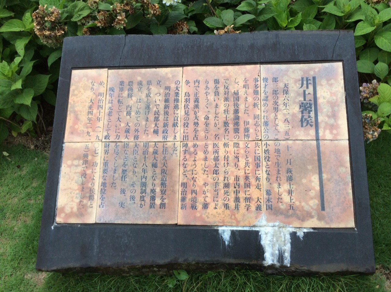 井上馨の碑には天保6年(1835年)11月萩藩士