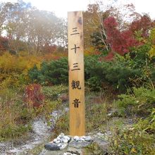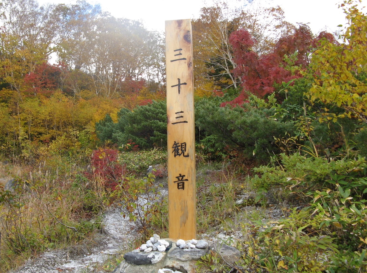 酸ヶ湯の経営者が八甲田のすべての安全を願うために、お客様と共同で付近の自然石を彫って造られたものだそうです。長い年月の間に岩石が風化し、観音様のお姿が不明瞭になってしまったものもたくさんありますが、紅葉の始まった山道を歩いてすがすがしい気持ちになりました。地獄沼を訪れたら、是非、参拝しながら散策されることをオススメします。